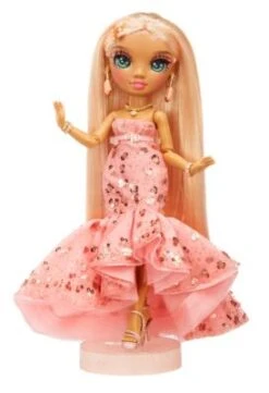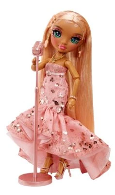 FĂŒr alle Mode-Fans und Styling-Freund*innen wird es jetzt musikalisch! Denn die bezaubernden Rainbow High Puppen betreten die BĂŒhne und kommen mit einer BĂŒhnenshow in die Kinderzimmer. In ihren tollen Outfits beeindruckt die Rainbow High Puppe und fĂŒr die Show kann sie sogar auf den beiliegenden PuppenstĂ€nder gestellt werden. Die langen Haare eignen sich fĂŒr die unterschiedlichsten Styling-Varianten und die beweglichen Gelenke machen die Mode-Puppen zu tollen Spielebegleiterinnen. Die Zubehörteile und 2 komplette Outfits werden alle kleinen und groĂen Rainbow High Fans begeistern.
