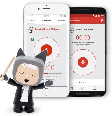 Wie fĂŒr alle Kreativ-Tonies, muss du dir auch fĂŒr den Dirigent ein kostenloses Toniecloud Kundenkonto einrichten und schon kannst du deine Geschichten, Lieder, Nachrichten, vorhandene HörbĂŒcher und die wildesten Hörabenteuer mit ihm verknĂŒpfen.